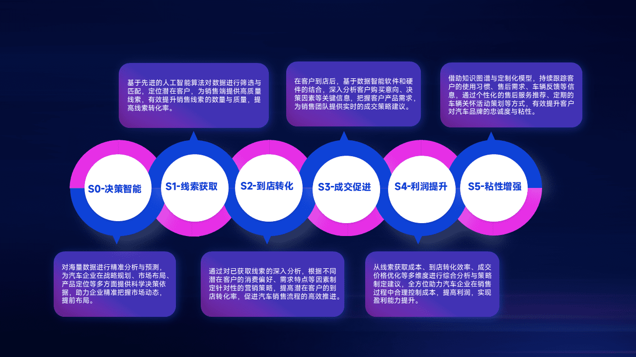 通过拓宽潜在客户来源、、、、优化线索分配并提高到店转化率,,,,以增强销售效率。。同时,,,,利用线索数据不断优化分析模型,,,,有效提升转化率,,,扩大营销影响力。。。